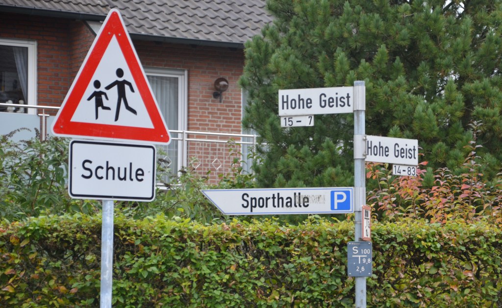 Das Schild 136 „Vorsicht Kinder!“ warnt jetzt Autofahrer an der Straße Hohe Geist davor, dass sich hier Kinder auf der Straße befinden können. Das Verkehrszeichen findet man hier, weil Schulkinder auf dem Weg von der Schule zur Sporthalle und zurück die Hohe Geist nutzen und der Kindergarten „Kleine Riesen“ hier beheimatet ist.