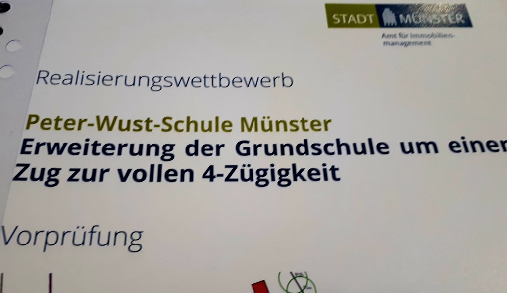 Geschlagene 11 Stunden war ich heute in Sachen Realisierungswettbewerb zur Erweiterung der Peter-Wust-Grundschuleschule um einen Zug zur vollen 4-Zügigkeit unterwegs. Jetzt ist es vollbracht. Wir haben einen Sieger!