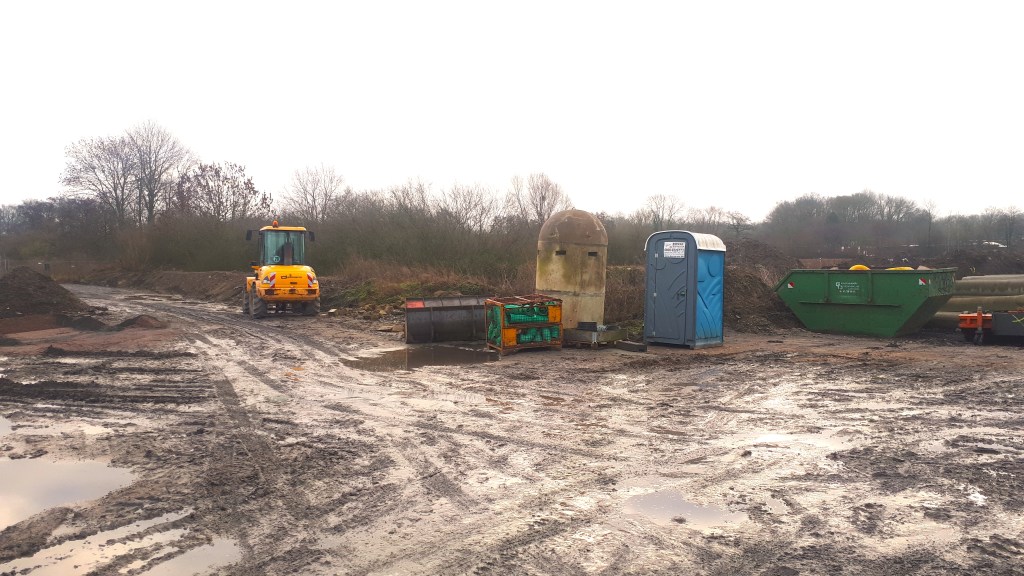 Der wassergebundene Weg kann zur Zeit noch nicht endgültig hergestellt werden, da die Fläche noch als „Materiallager“ benötigt wird und darüberhinaus noch eine Böschung zwischen der verlegten Heroldstr. und dem Weg hergestellt wird.