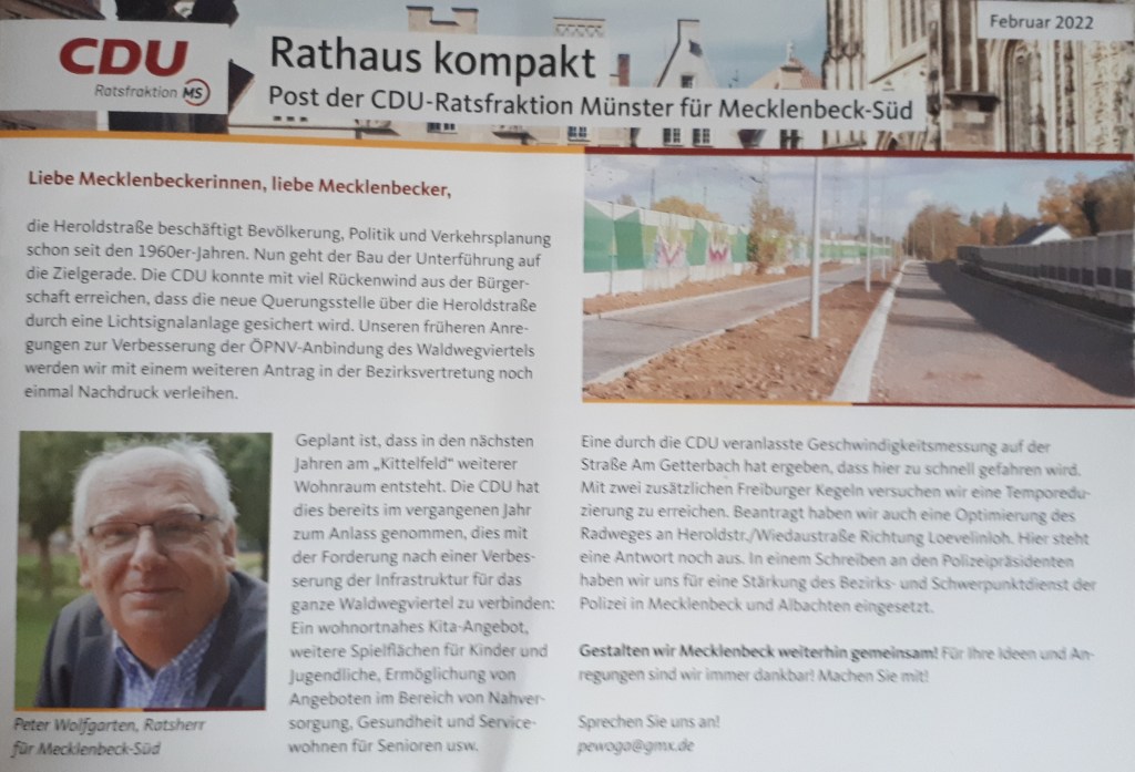 Seit der Kommunalwahl im September 2020 bin ich als Ratsherr und Bezirksvertreter für Ihre Anliegen oder Fragen da. Nach über einem Jahr meiner Tätigkeit informiere ich Sie jetzt per Ratsbrief – in aller Kürze – über aktuelle Ereignisse. Sprechen Sie mich an!