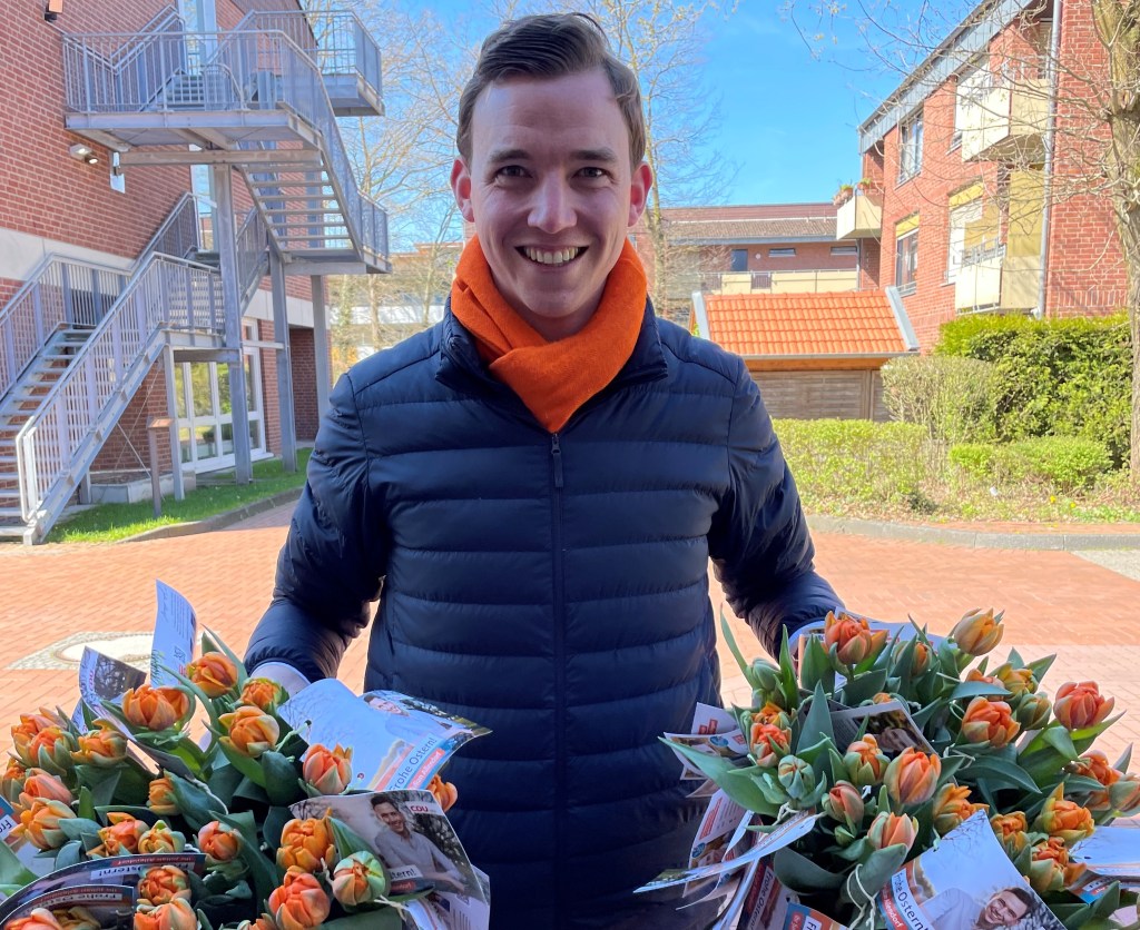 Die Bewohner im Evangelischen Seniorenzentrum Meckmannshof sowie im Wohnpark Mecklenbeck konnten sich am Osterwochenende über einen besonderen Gruß freuen. CDU-Landtagskandidat Dr. Julian Allendorf überbrachte gemeinsam mit Ratsherr Peter Wolfgarten den Einrichtungen 250 gefüllte Tulpen mit einem persönlichen Ostergruß. Christen in aller Welt feiern mit dem Osterfest den höchsten christlichen Feiertag, das Fest der Hoffnung und der Auferstehung. „Mit einem kleinen Blumengruß möchten wir diese Hoffnung auch in die Senioren- und Pflegeheime in Mecklenbeck bringen“, erklärt Allendorf.