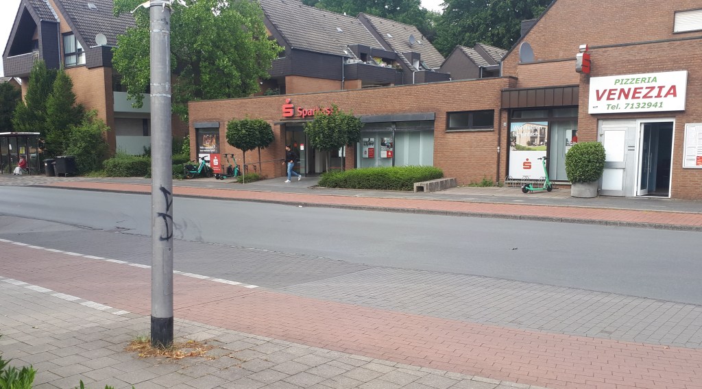 Im Gegensatz zu Hern Pape halte ich es für wichtig, dass neben den Radfahrern auch ältere Menschen mit Rollatoren oder Menschen mit Rollstühlen, Eltern mit Kinderwagen oder auch Menschen mit Gehbehinderungen den Dingbängerweg queren können. Auch ohne sich noch längere Zeit auf dem Dingbängerweg aufhalten zu müssen, um eine geeignete abgesenkte Bordsteinkante zu erwischen. Denn auf Höhe der Sparkasse ist die Querung des Dingbängerweges für diese Menschen nicht oder nur mit Hilfe möglich.