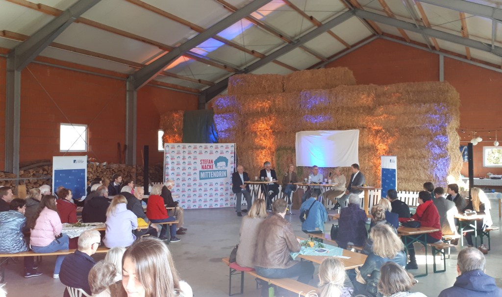 Darüber diskutierten und informierten auf dem Hof Konermann MdB Dr. Stefan Nacke, Susanne Schulze Bockeloh, Vorsitzende des Landwirtschaftlichen Kreisverbandes Münster, Andreas Hemsing, Geschäftsführender Vorstand EBÄCKO, Maria Hoffmann, Agrar-Influenzerin, Hans-Georg Reuter, Münstertafel und Michael Radau, Vizepräsident Handelsverband Deutschland.
