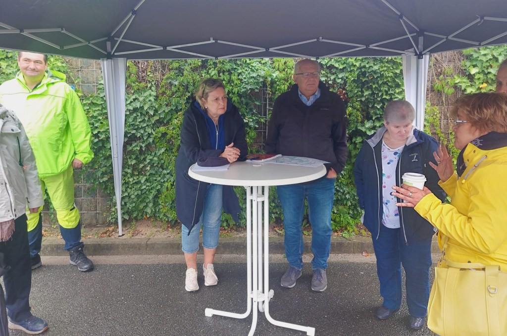 Unter einem Zelt versammelten sich am 02.08.23 trotz dem starken Regen bei der Bürgersprechstunde der CDU-Ortsunion Albachten zahlreiche Bürgerinnen und Bürger. MdL Simone Wendland und Ratsherr Peter Wolfgarten stellten sich den Fragen der Bürger.