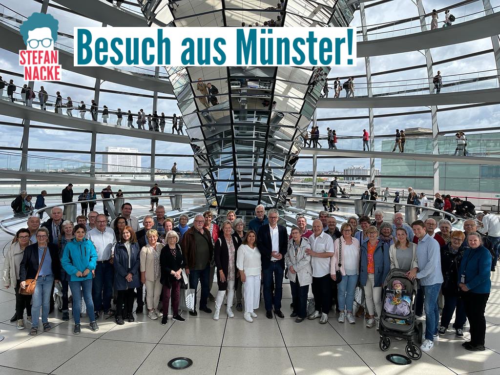 In der parlamentarischen Sommerpause durfte ich heute im Bundestag wieder Münsteranerinnen und Münsteraner begrüßen. Neben hoffentlich spannenden Einblicken im Reichstag und weiteren Programmpunkten in Berlin hat mich der gute Austausch zu den aktuellen politischen Themen besonders gefreut!