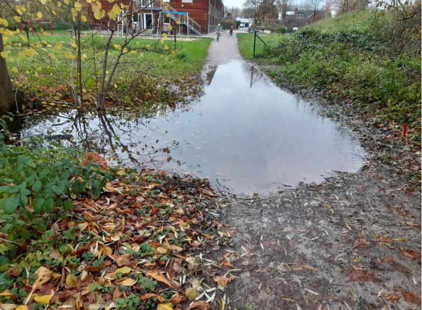 Nun ist ein anderer Teilabschnitt des Weges durch aufgestautes Wasser aus einem Entwässerungsgraben überflutet und aufgeweicht worden. Die Ursache und die Schäden sollten daher zeitnah beseitigt werden, damit der Weg seine Funktion wieder erfüllen kann.