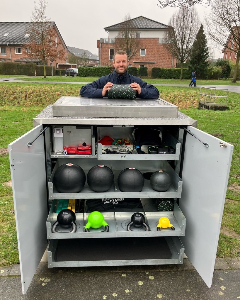 Münster (SMS) Fitnesstraining im Freien, spontan und dazu noch kostenlos: Nach der positiven Resonanz auf die im Jahr 2021 gestartete digitale Sportbox an der Sentruper Höhe hat die Stadt Münster ihr Angebot nun ausgeweitet. In dieser Woche stellte das Sportamt fünf weitere Boxen auf. Drei der neuen Fitnessstudios im Kleinformat stehen ab sofort an den Sportanlagen Wienburgstraße, Hiltrup Süd und Mauritz-Lindenweg. Zwei weitere finden Sportbegeisterte an den Spielplätzen Am Hof Schultmann/Meyerbeerstraße in Mecklenbeck und Holtrode in Wolbeck.