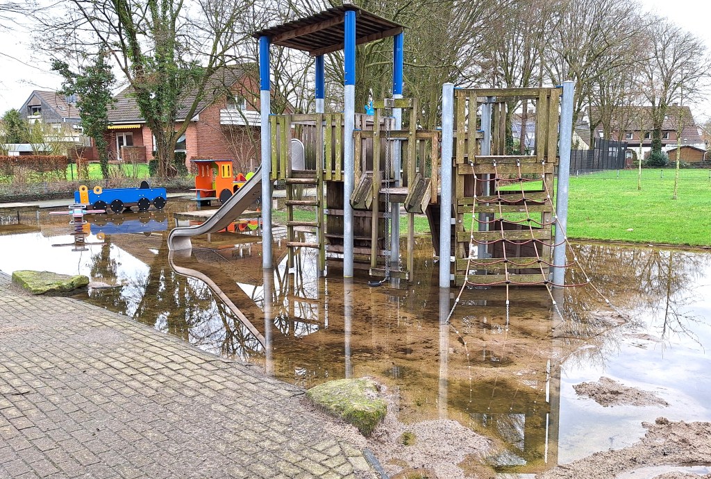 Bei starken Regenfällen sammelt sich das Oberflächenwasser im Spielbereich und verhindert oftmals über längere Zeit die Nutzung.