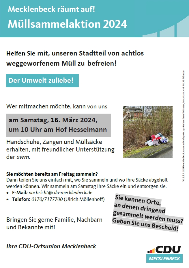 Helfen Sie mit, unseren Stadtteil von achtlos weggeworfenen Müll zu beseitigen.