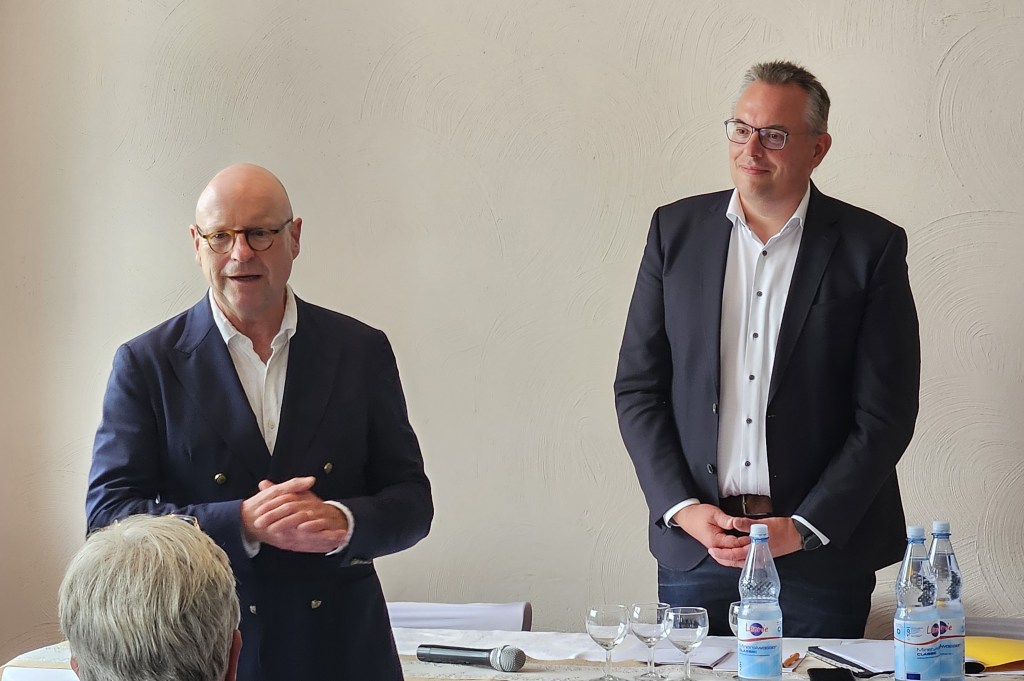Oberbürgermeister Markus Lewe (links) überbrachte den Mitgliedern der CDU-Fraktion im ESV-Vereinsheim den Verzicht auf eine erneute Kandidatur im Herbst 2025. „Bis zum Ende der Amtszeit werden wir weiter gut und erfolgreich zusammenarbeiten“, sagte der Fraktionschef Stefan Weber.