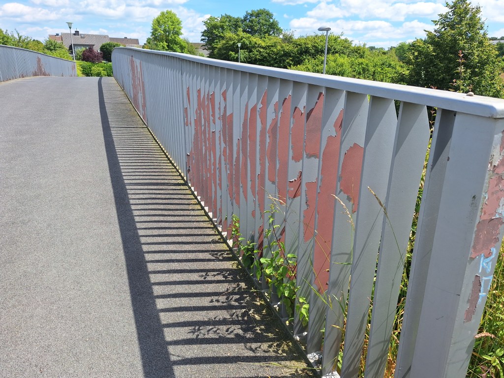 1. In der Antwort vom 16.07.2024 weist die Verwaltung darauf hin, dass für die Schadensbehebung eine mehrwöchige Vollsperrung der Brücke erforderlich wird. Grund dafür sei eine notwendige Geländerdemontage. Das Geländer müsse dann im Werk neu beschichtet werden.