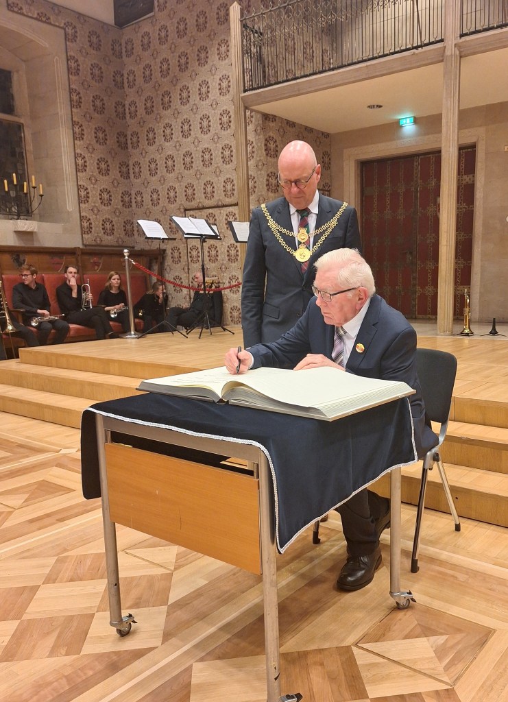Josef Häming beim Eintrag ins Goldene Buch der Stadt Münster