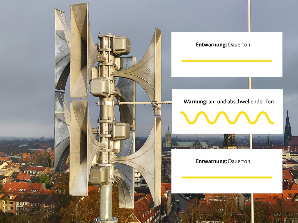 Die Sirenensignale Entwarnung – Warnung – Entwarnung sind beim Probealarm am 11. September in Münster zu hören. Foto: Stadt Münster