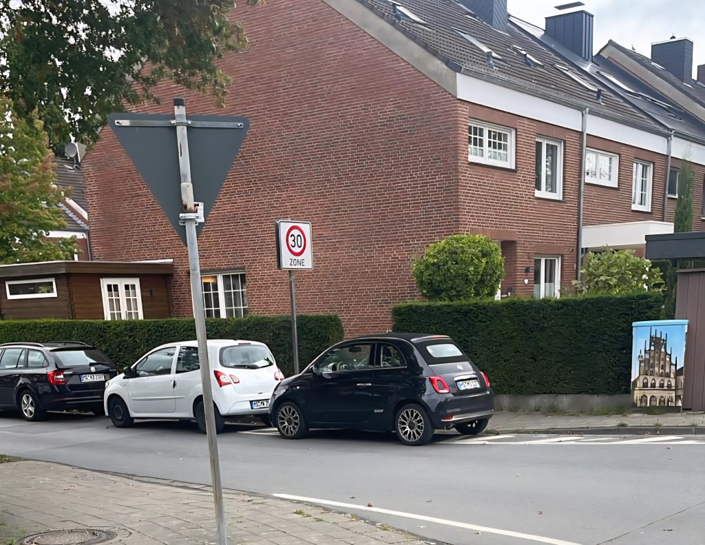 Im Bereich der abgesenkten Bordsteinabsenkungen ist gem. § 12 Absatz 3 der Straßenverkehrsordnung das Parken unzulässig, die eingezeichneten weißen Linien verdeutlichen diesen Zustand zusätzlich. Auch wenn der Parkraum auf der Albachtener Str. inzwischen knapp geworden ist, bitten wir um Beachtung, um insbesonderen Personen mit Einschränkungen eine Chance zu geben, die Straße zu queren.