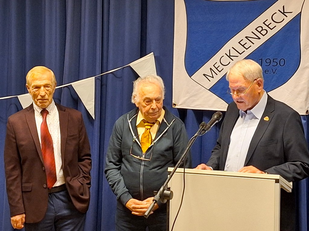 Ich habe die besondere Ehre, in dem ich zwei Ihrer bekanntesten und verdienstvollsten 1. FC – Mecklenbeckern, Heinz Matzinke und Siegfried Küch, in Anerkennung ihrer hervorragenden Verdienste um den Sport in Westfalen das Verbandsverdienstzeichen in Silberbesonders auszeichnen kann.