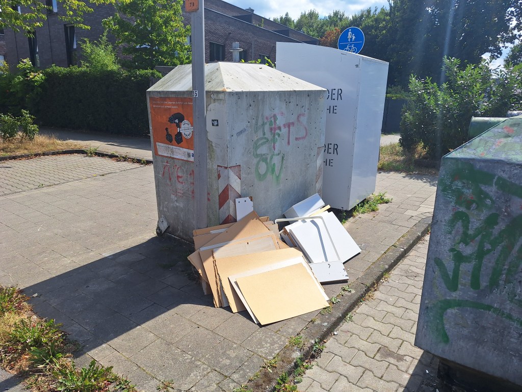 Zeitnah wird daher der Glascontainer an der Heroldstraße 55 entfernt (zwischenzeitlich Waldweg 24 a; ursprünglich Ecke Rockbusch / Kleibusch).