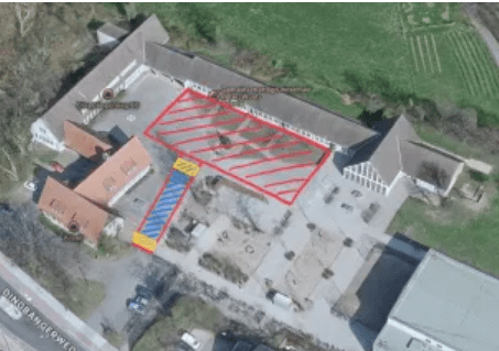 Wie immer wurde im Vorfeld mit großer Sorgfalt geplant, damit alles sicher und geordnet abläuft. ! In mehreren konstruktiven Gesprächen mit den verantwortlichen Bauleitern wurde ein Konzept entwickelt, das die Sicherheit von Kindern und Mitarbeitenden gewährleistet. Auf dem Gelände wird es daher abgesperrte Bereiche mit Bauzäunen (rote Markierung) geben. Ein gesicherter Zufahrtsweg (blau Markierung) wird für die Baustellenfahrzeuge eingerichtet. Sicherheitsschleusen für die Kinder (gelbe Markierung) sorgen dafür, dass die Kinder stets gut und sicher geführt werden.